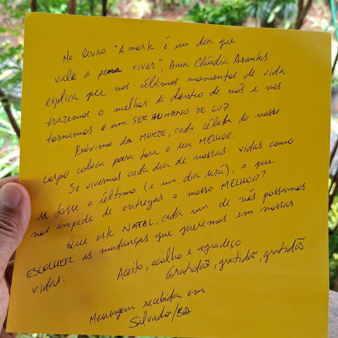 No livro “A morte é um dia que vale a pena VIVER”, Ana Cláudia Arantes explica que nos últimos momentos de vida trazemos o MELHOR de dentro de nós e nos tornamos um SER HUMANO DE LUZ.